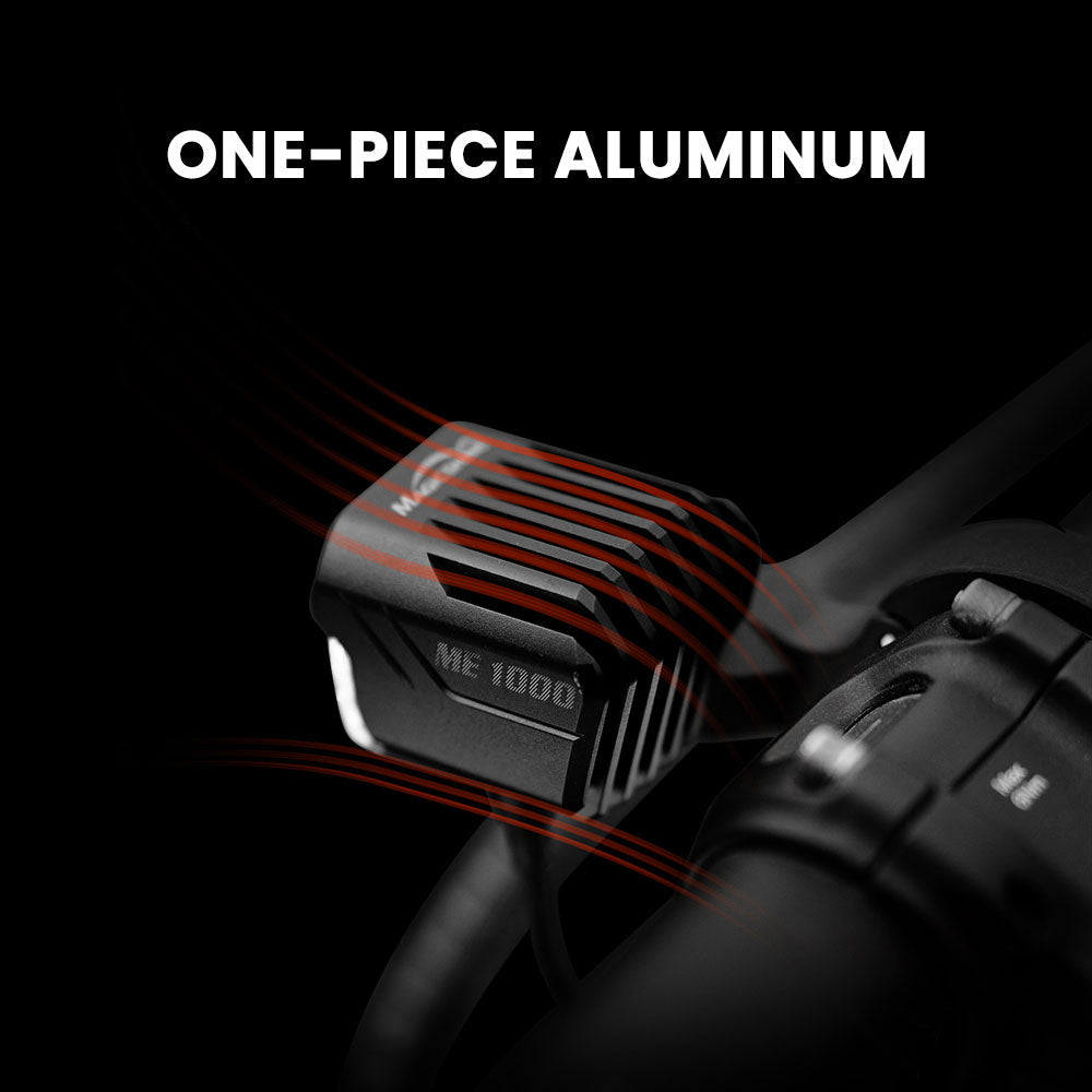 Crafted from a single CNC molded aluminum piece, the light efficiently dissipates heat through large fins, keeping it reliable even on extended rides or hot summer days.