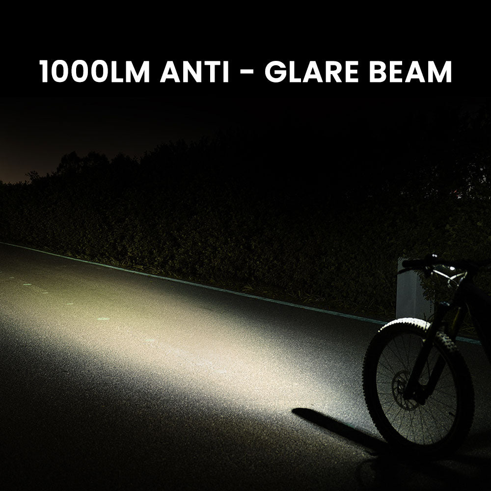 A specially engineered anti-glare lens focuses the 1000-lumen beam where it matters most , revealing distant obstacles sooner while keeping glare under control.